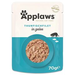APPLAWS Cat filet z tuńczyka w galaretce dla kota - opakowanie 16x70g Karma uzupełniająca dla dorosłych kotów z tuńczykiem w galaretce. Karma zawiera tylko naturalne składniki, bez sztucznych dodatków. Jest bogata w taurynę i kwasy Omega-3. Pyszna galaretka sprawia, że karma jest bardziej...